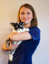 Dr. Rassett is also passionate about veterinary dentistry and loves performing dental procedures on dogs, cats, and small mammals. She strongly believes that high-quality, consistent dental care can drastically improve an animal’s quality of life and overall health. In her free time, Dr. Rassett enjoys reading, crafting, doing DIY projects, and spending time outdoors. She can often be found working on sewing projects, training her cats, and spending time with friends and family.